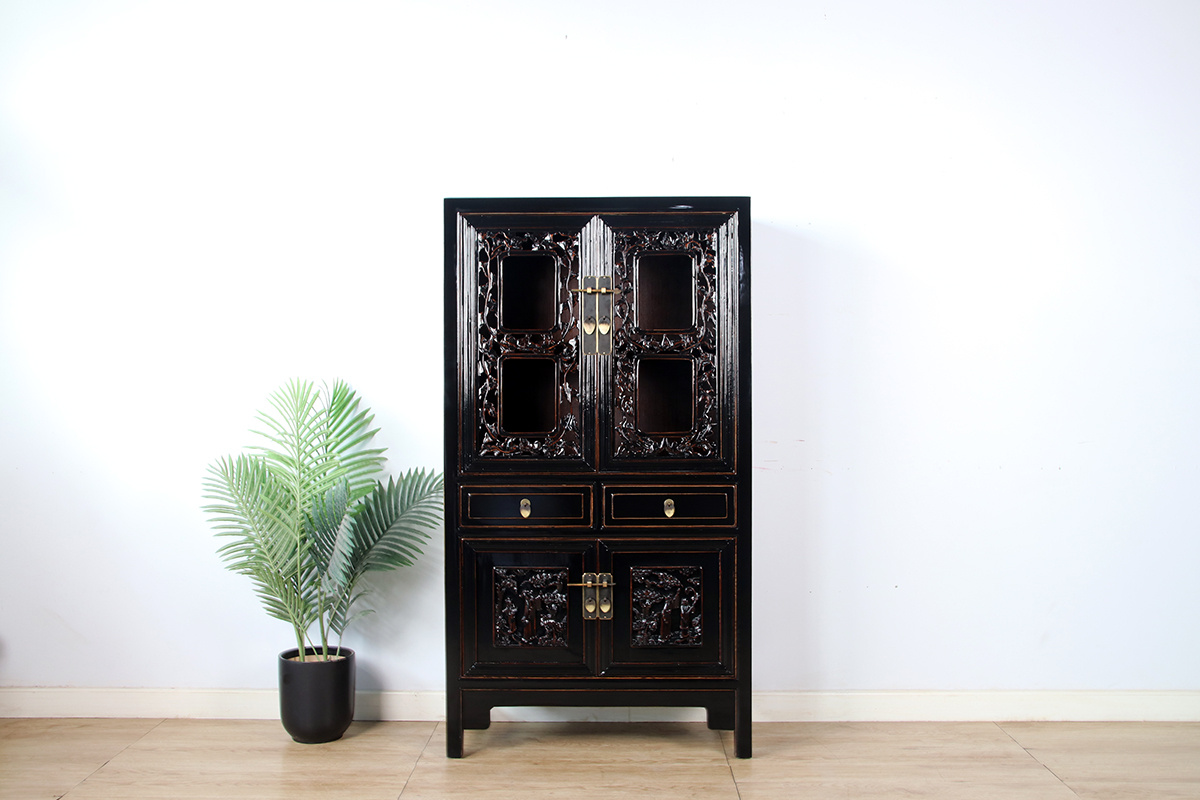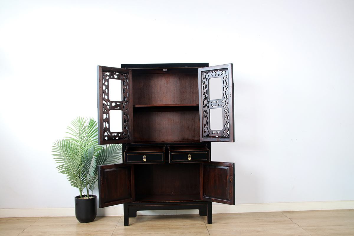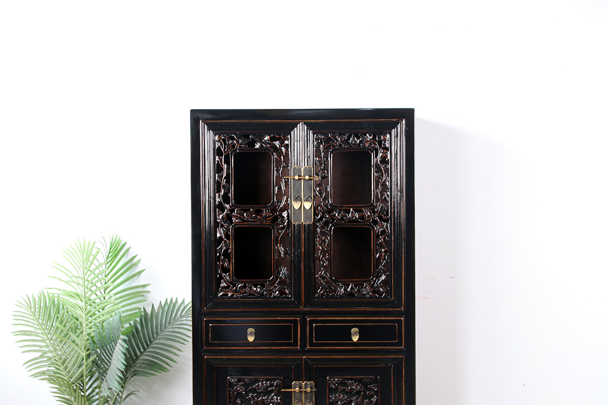 Antiker chinesischer Hochzeitsschrank: Dieser exquisite antike Hochzeitsschrank besticht durch seine aufwändige Handwerkskunst und symbolische Bedeutung. Hergestellt aus robustem Massivholz und kunstvoll mit handgeschnitzten Ranken und Lotusblüten verziert, verkörpert dieses Möbelstück die Schönheit und die tiefen Traditionen der chinesischen Kultur. Die Schnitzereien auf den Türen stellen die Ranke des Lebens und des endlosen Glücks dar, Symbole für Langlebigkeit und unendliche Verbundenheit. Dieser Schrank bringt nicht nur einen Hauch von exotischem Charme in Ihr Zuhause, sondern dient auch als praktischer Stauraum für Ihre wertvollsten Besitztümer.