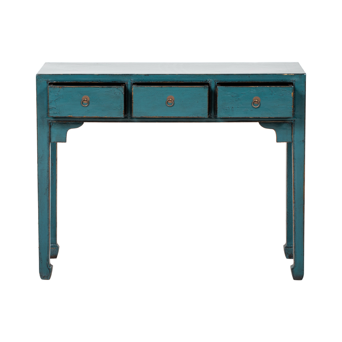 antiker Desk Tisch Konsolentisch Beistelltisch mit drei Schub blau