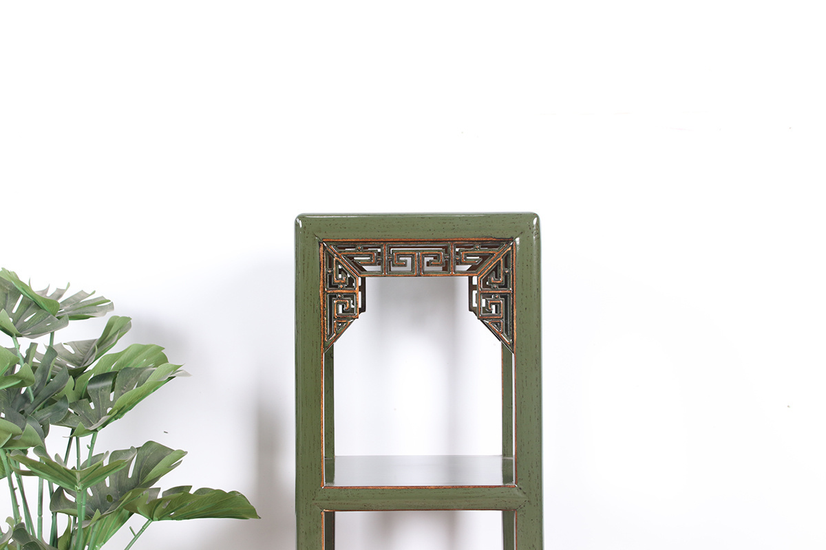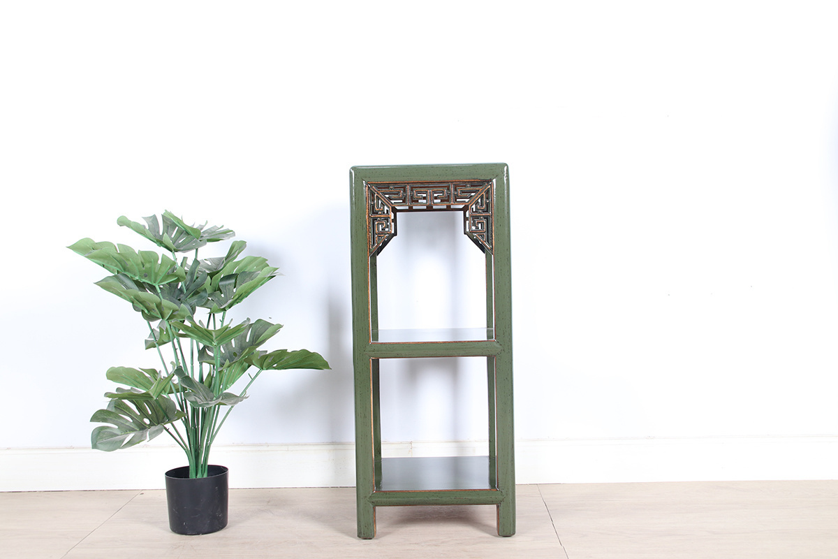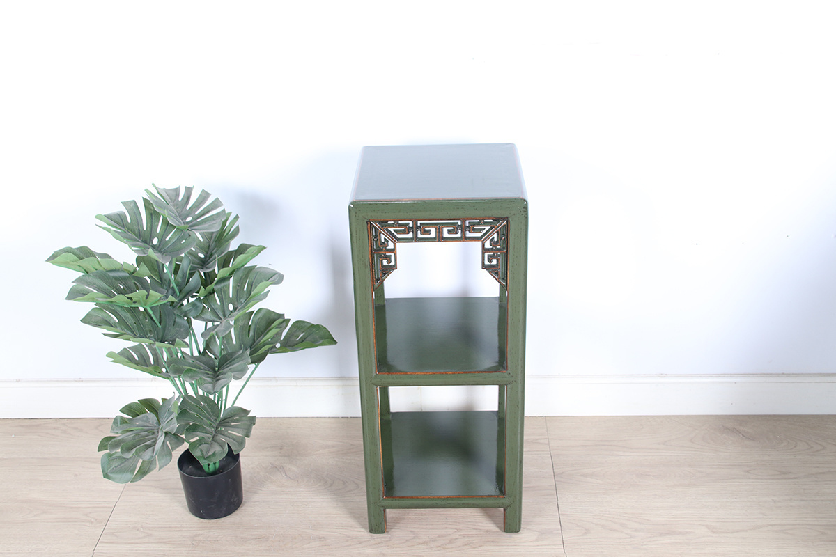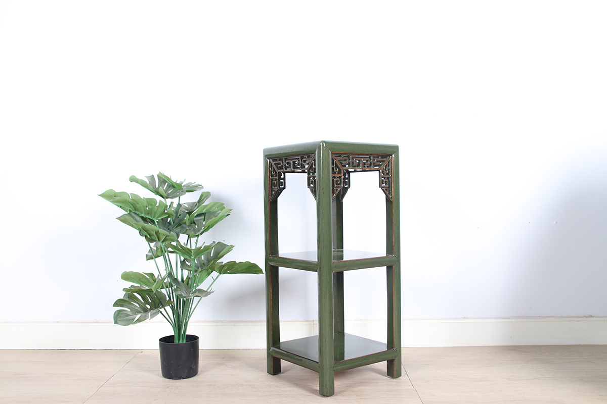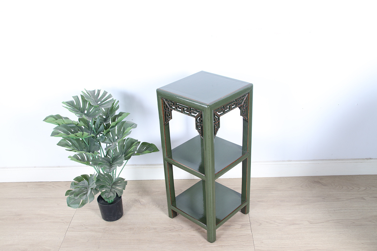 Blumensäule Pflanzenständer Beistelltisch Regal Massivholz olivgrün