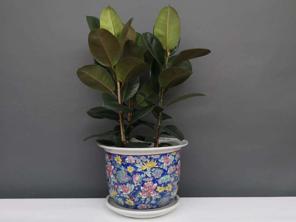 Dieser Porzellan Blumentopf mit einem Durchmesser von 19 Zentimetern besitzt besondere schöne Blau mit bunten Blumenmotiv.