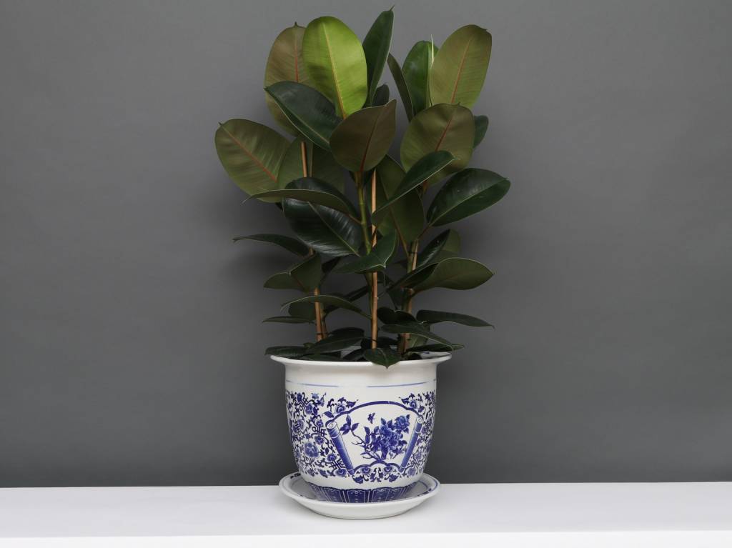 Der Blumentopf wird mit einem dekorativen Porzellan Untersetzter geliefert und ist Teil einer Serie von Porzellan Blumentöpfen / Übertöpfen mit identischem Design mit Blütenmuster.