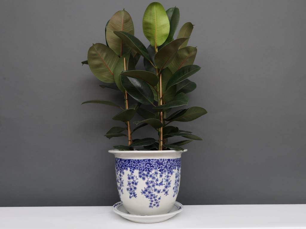 Der Blumentopf wird mit einem dekorativen Porzellan Untersetzter geliefert und ist Teil einer Serie von Porzellan Blumentöpfen / Übertöpfen mit identischem Design mit Schmetterling Blütenmuster .