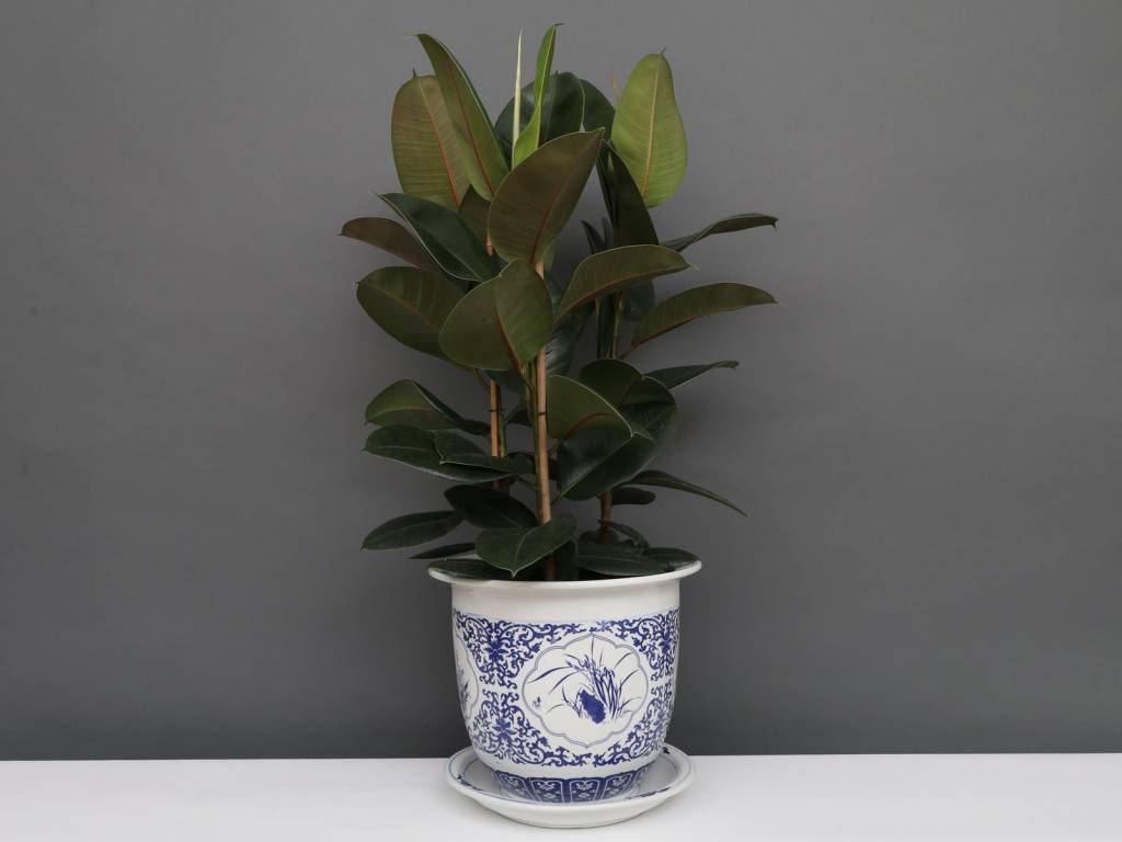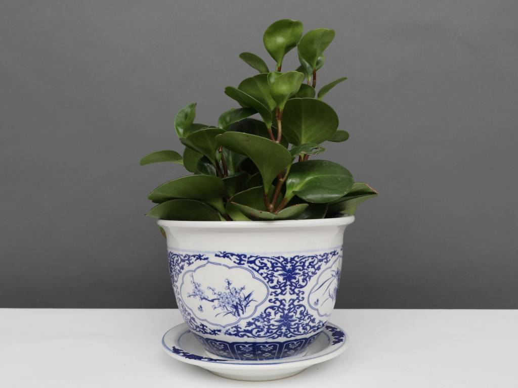 China Porzellan Blumentopf Blau-Weiß mit Vier Blumen Ø 19