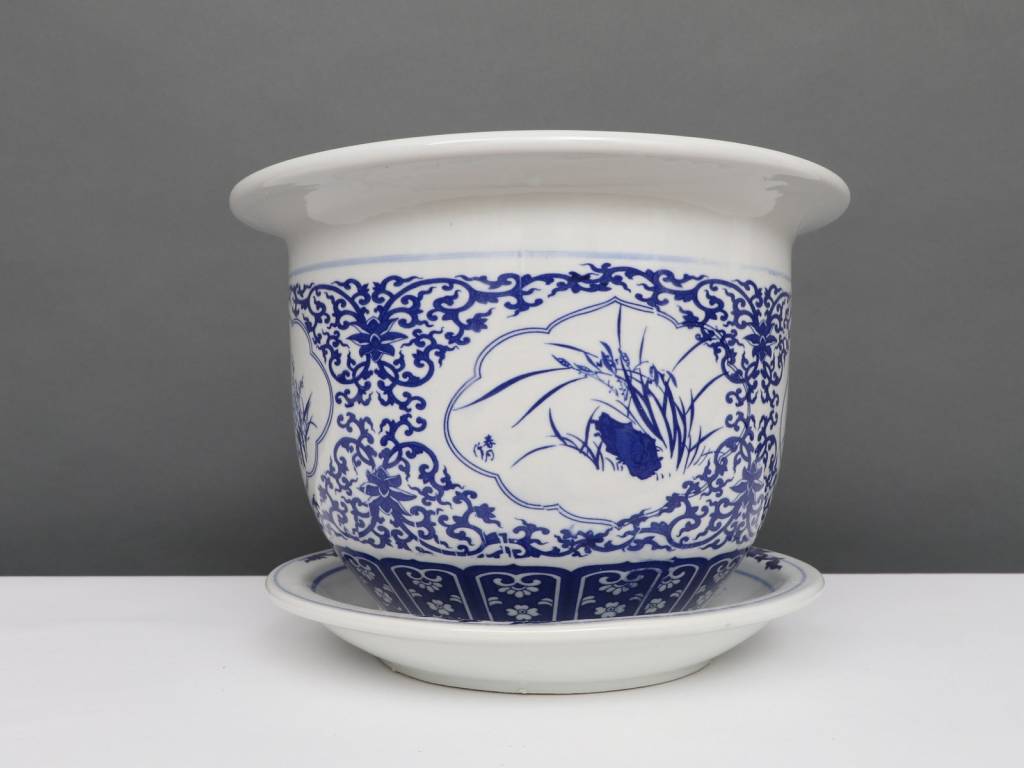 Spezifikationen für: China Porzellan Blumentopf Blau-Weiß mit Vier Blumen Ø 19