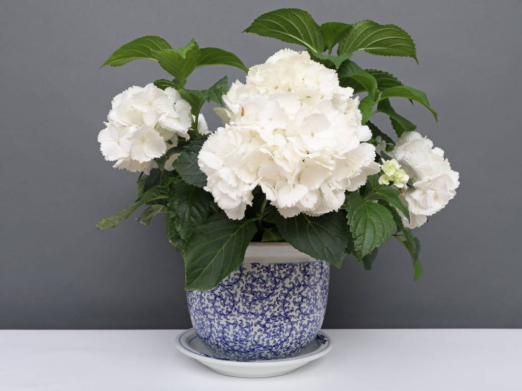 Blumentopf Blau-Weiß Schneckeblatt Ø13