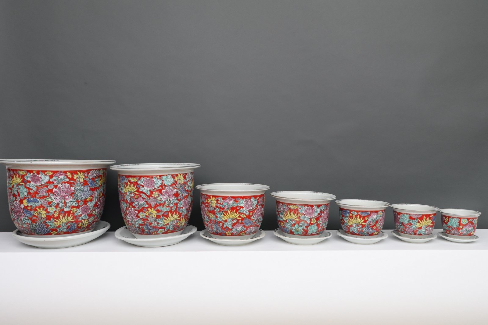 Dieser Porzellan Blumentopf mit einem Durchmesser von 16 Zentimetern besitzt besondere schöne Rot mit bunten Blumenmotiv.
