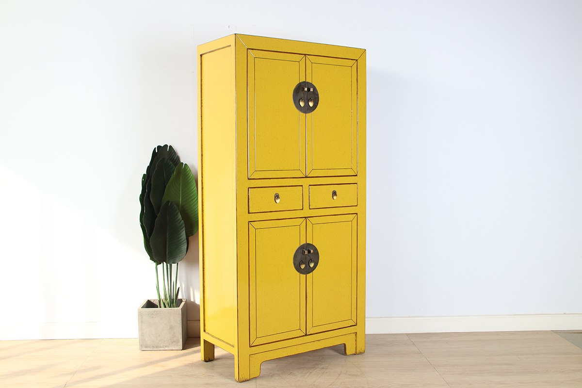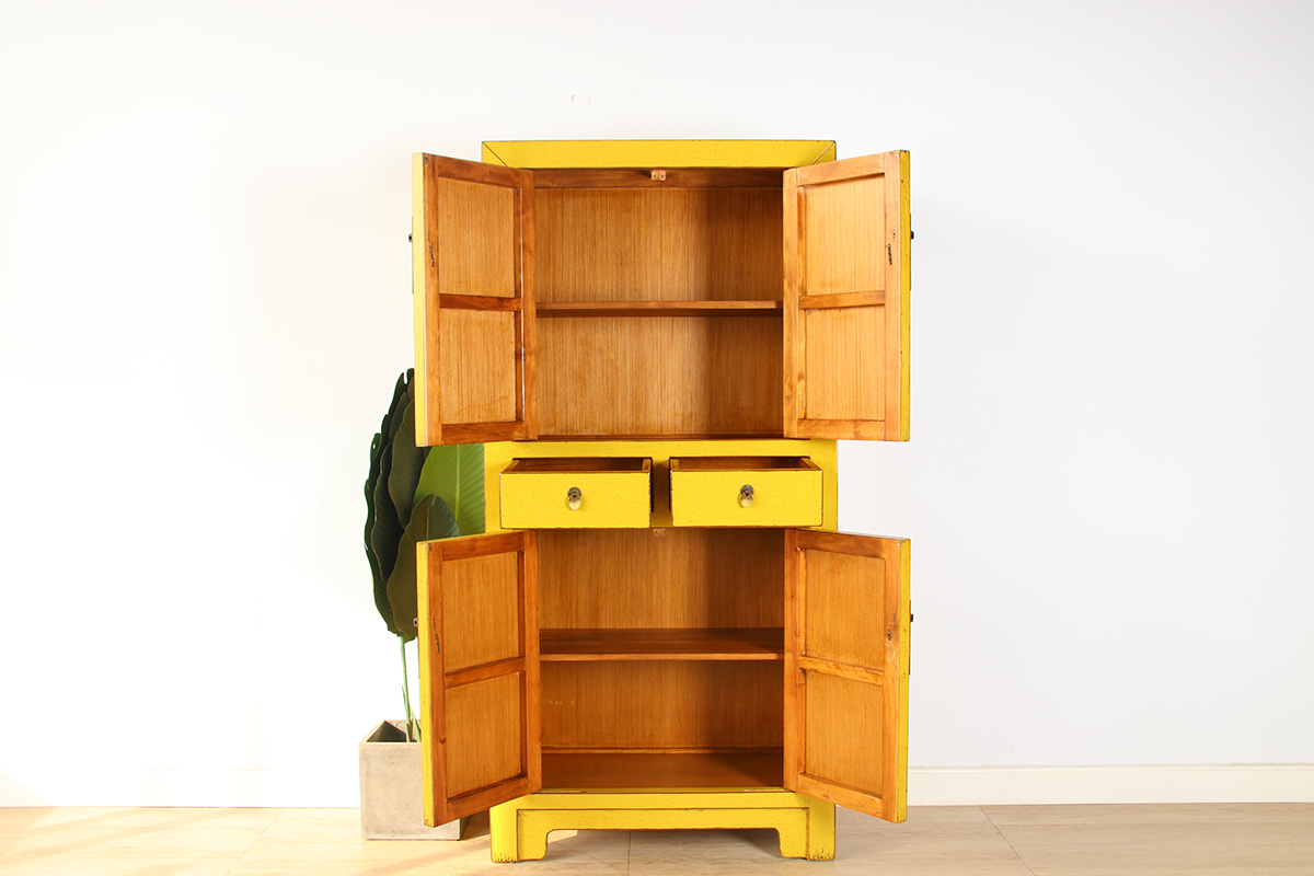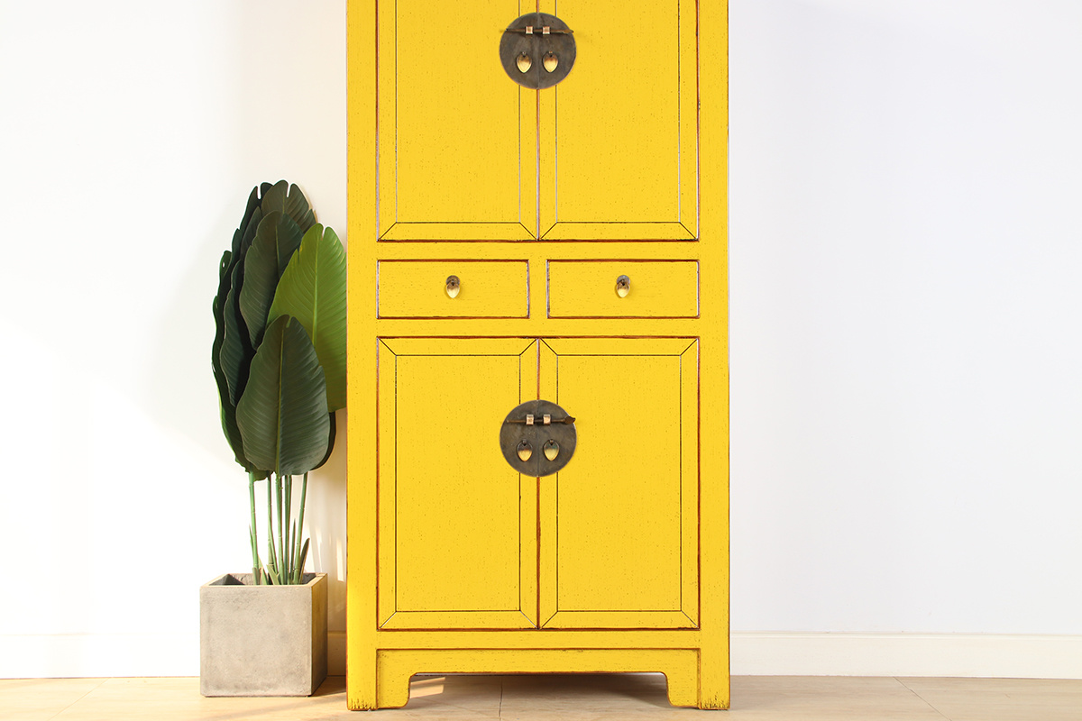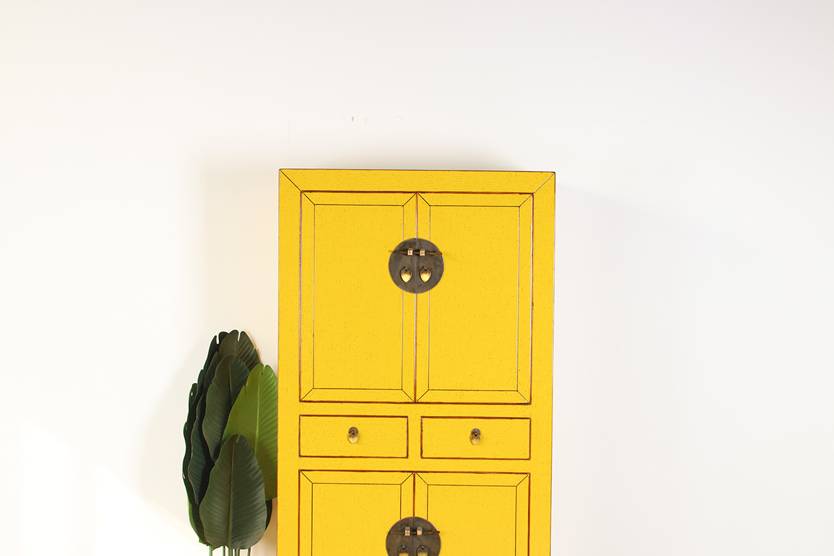 Chinesische Kommode Hochzeitschrank Massivholz gelb