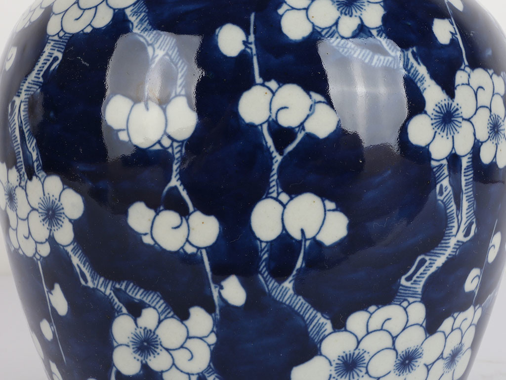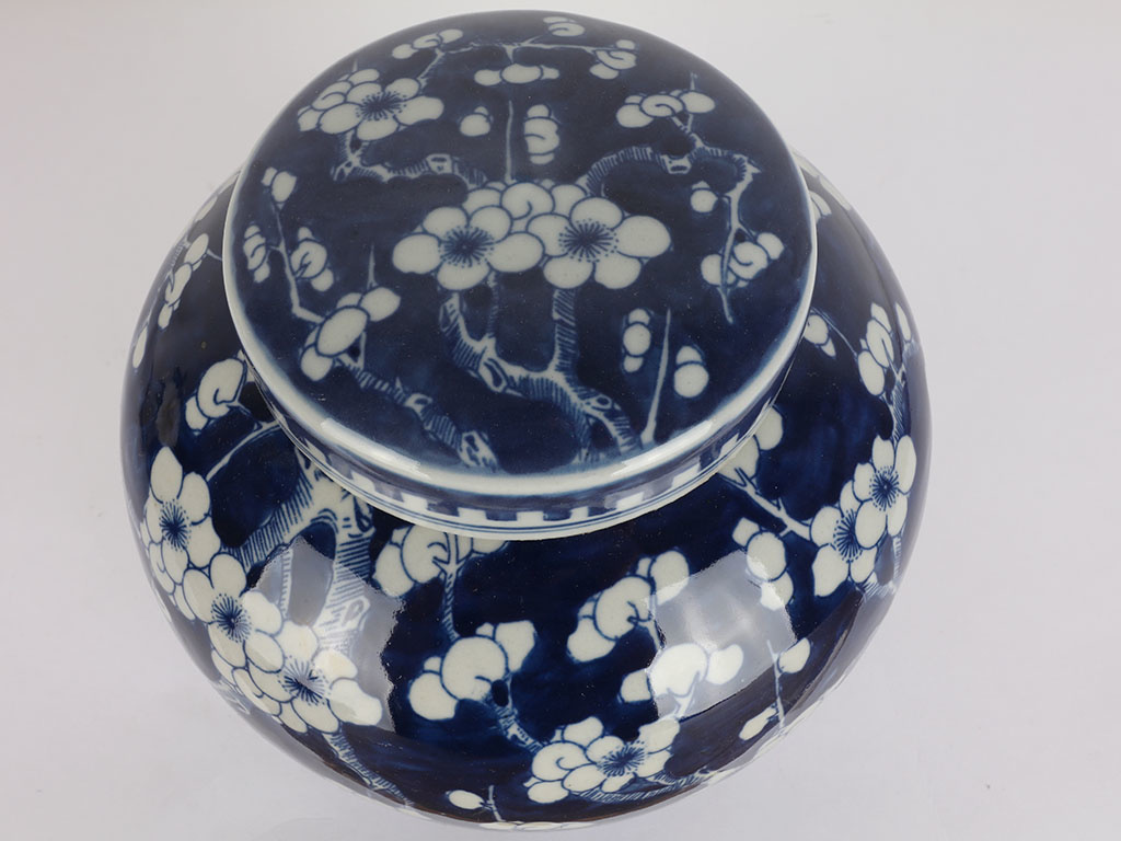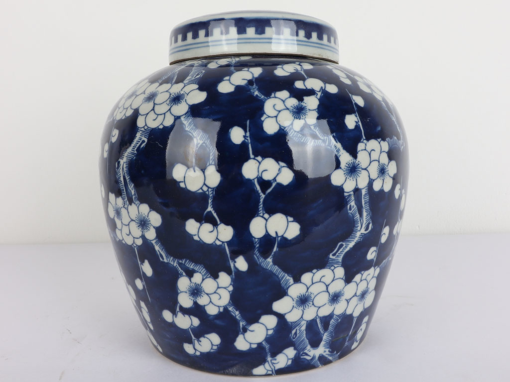 Diese Porzellan Deckelvase mit einem Durchmesser von 18 Zentimetern besitzt besondere schöne blau Motiv.