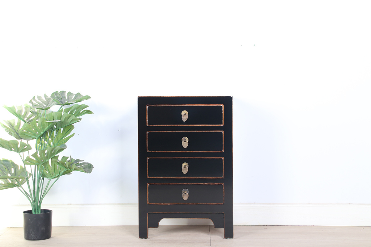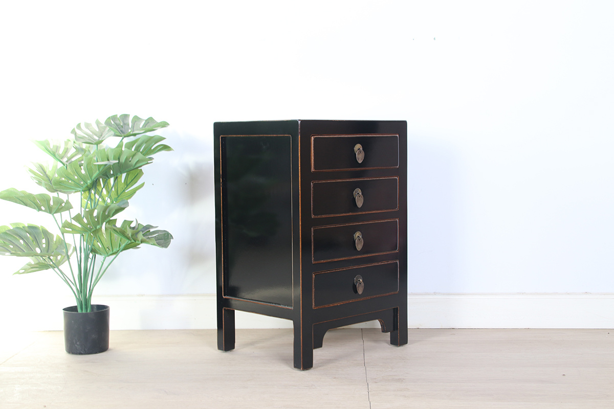 Chinesische Kommode Nachttisch glänzend schwarz