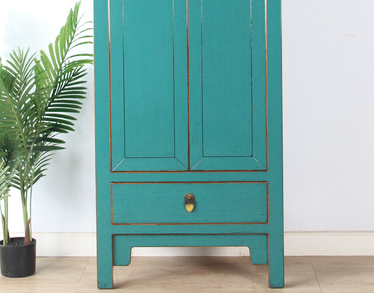 Chinesischer Hochzeitschrank 2 Türen 1 Schublade türkis  RAL5018