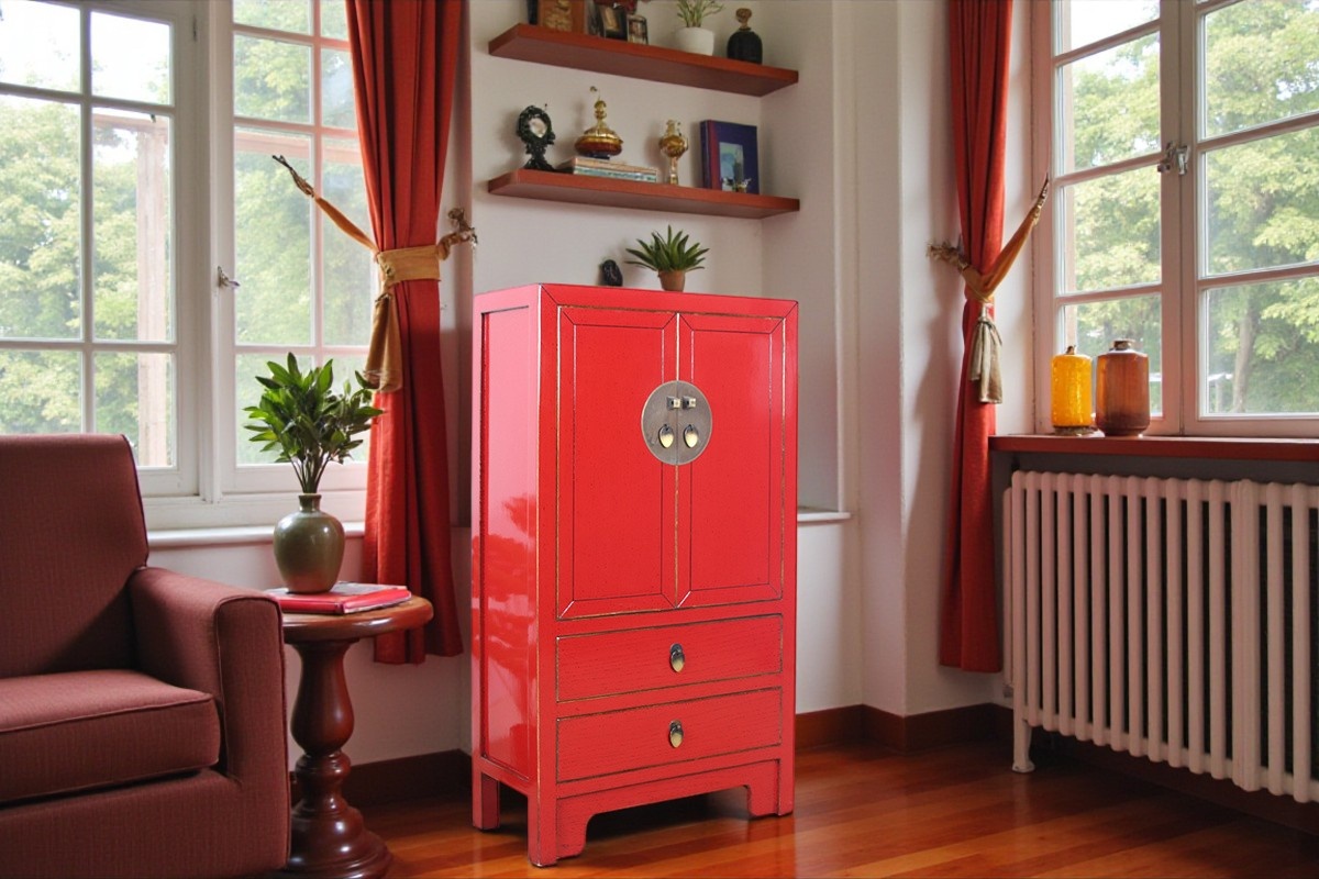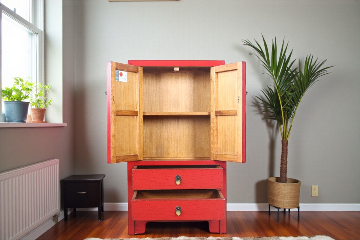 chinesische Kommode Sideboard 2 Schubladen 2 Türen rot
