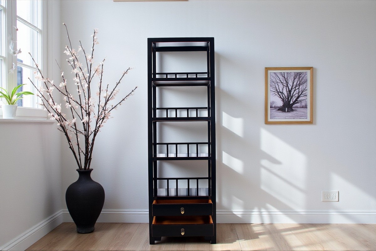 Regal Kommode Schrank Massivholz 2 Schubladen schwarz