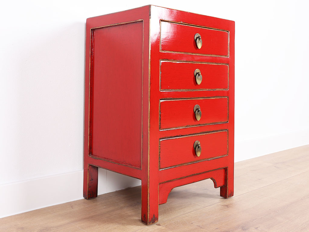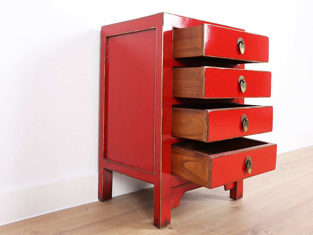 Chinesische Kommode chinesischer Nachtschrank Massivholz China rot mit Naturholz Kanten mit 4 Schubladen.Stil: Orientalisch/Asiatisch. Ein wunderschöner Eyecatcher für Ihr Zuhause.
