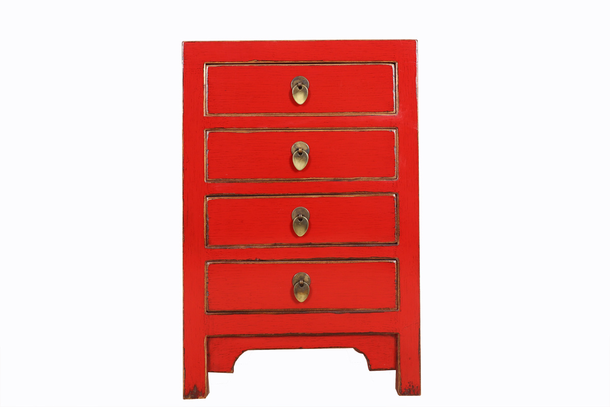 Chinesische Kommode chinesischer Nachtschrank Massivholz China rot