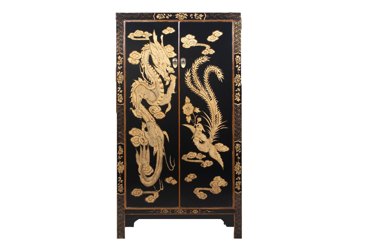 Cabinet with hand painting phoenix black