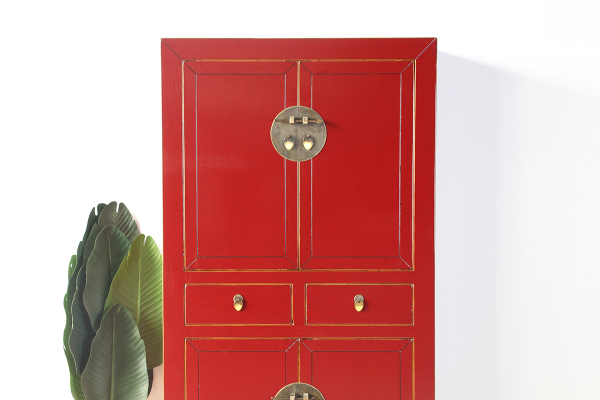 One beautiful cabinet has 2 drawers and 4 doors. Inside there are (each removable): shelves. Style: Oriental / Asian. A wonderful eye-catcher for your home.