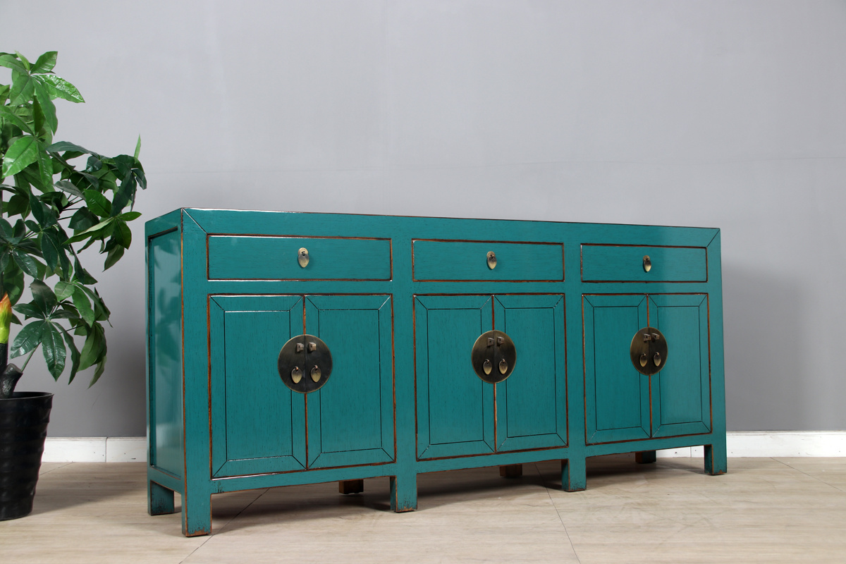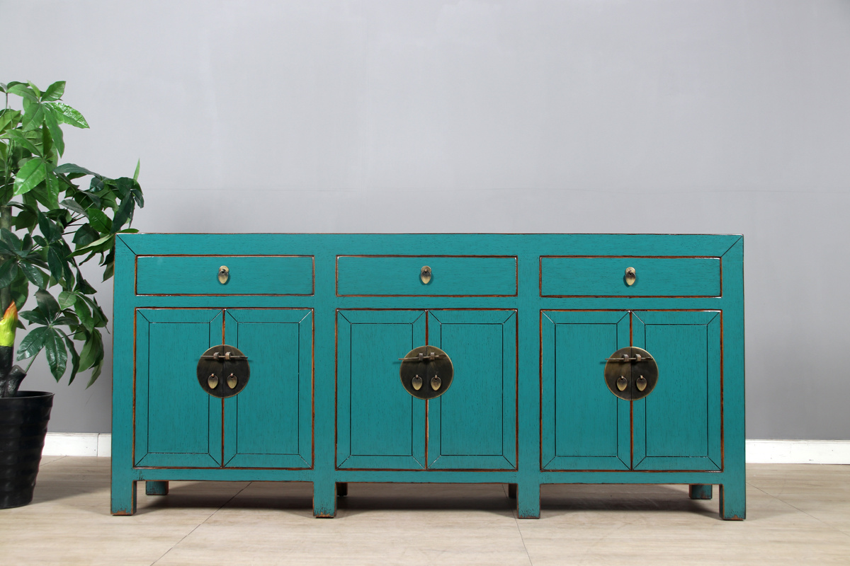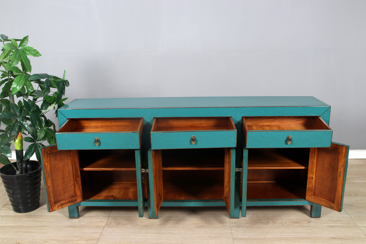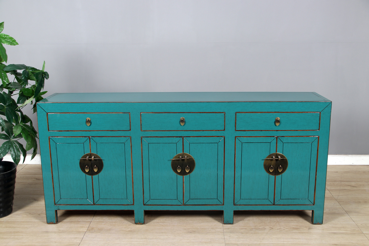 Chinese dresser sideboard with 6 doors and 3 drawers – turquoise