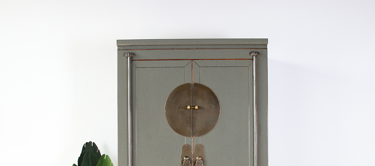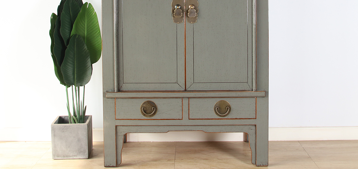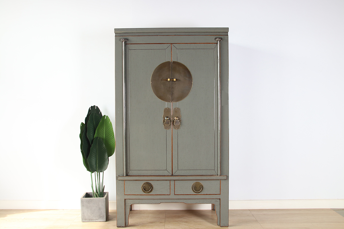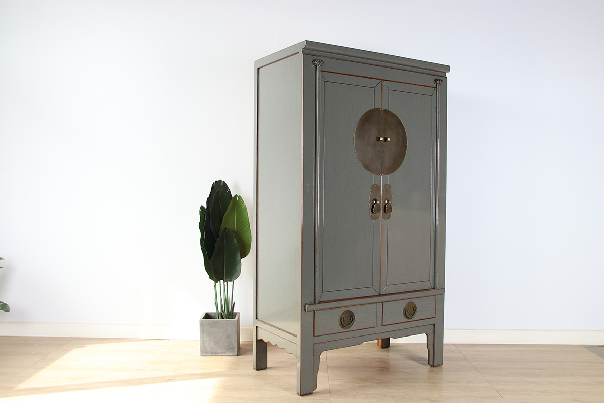 Chinese wedding cabinet solid wood 2 doors wardrobe gray RAL7005
