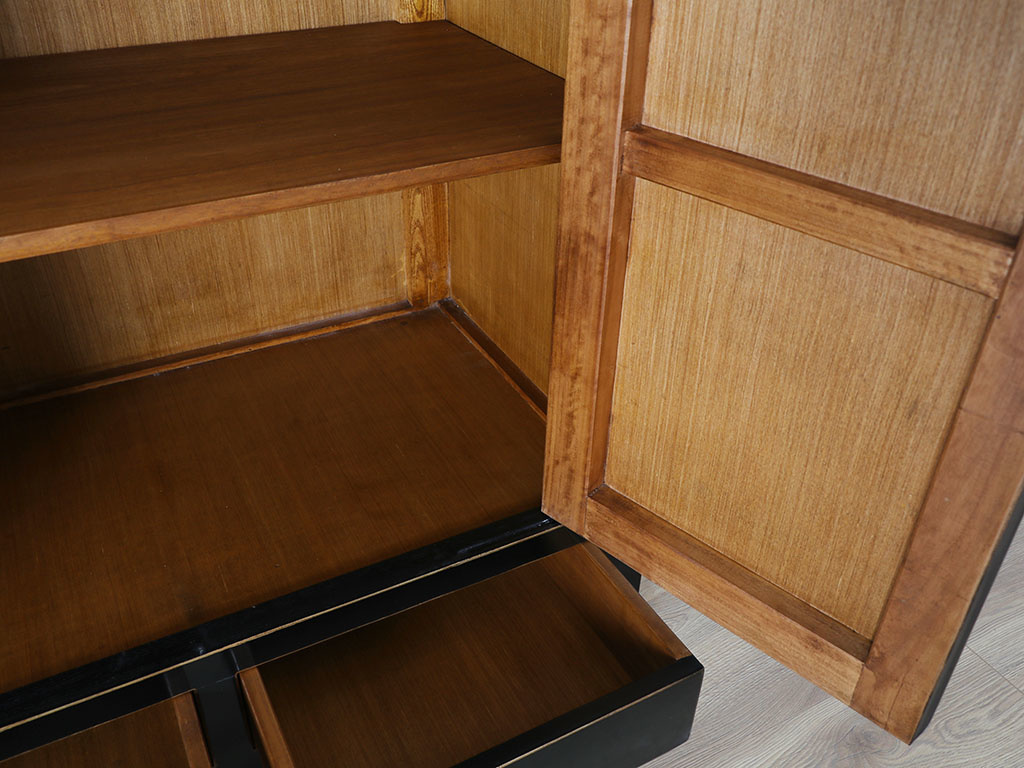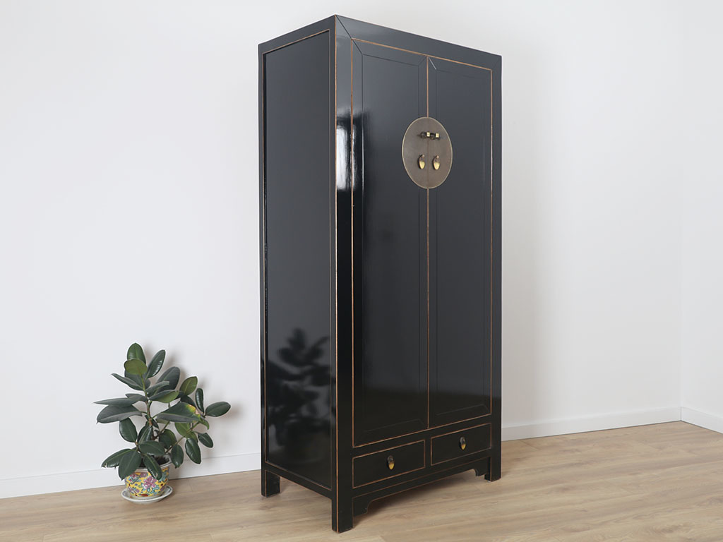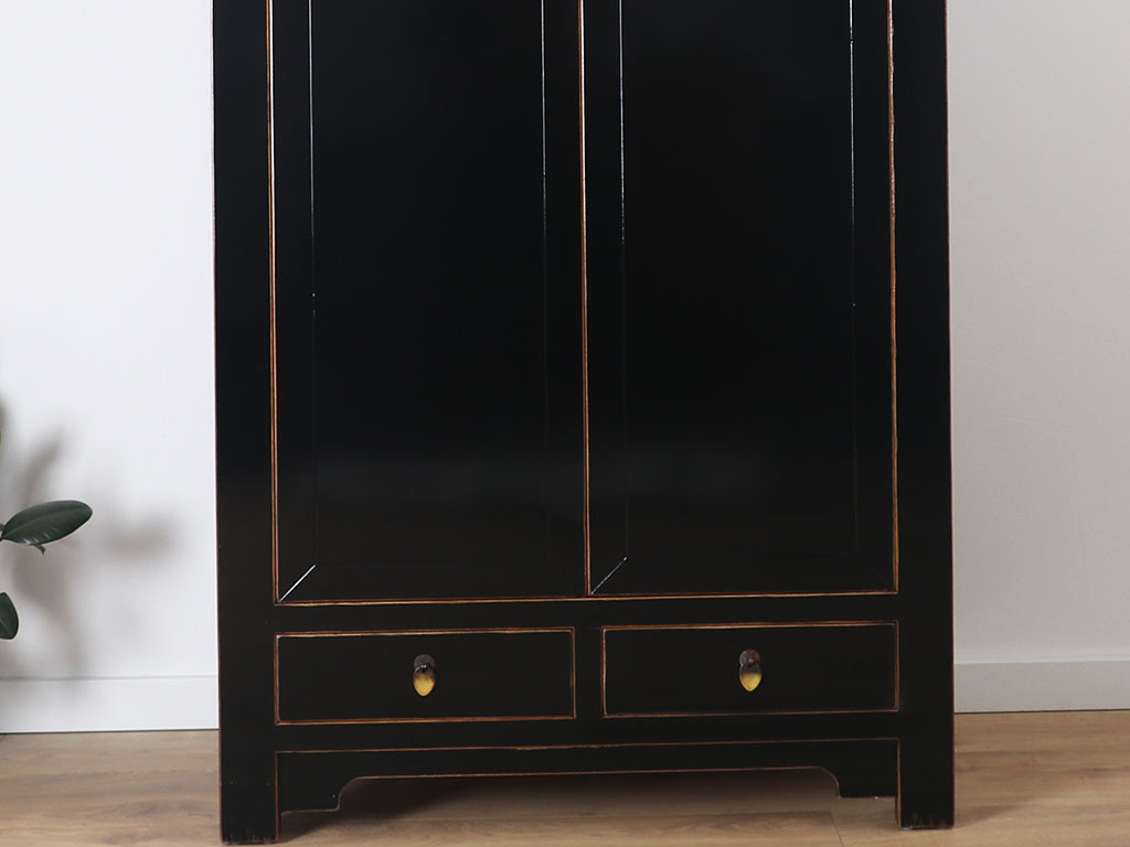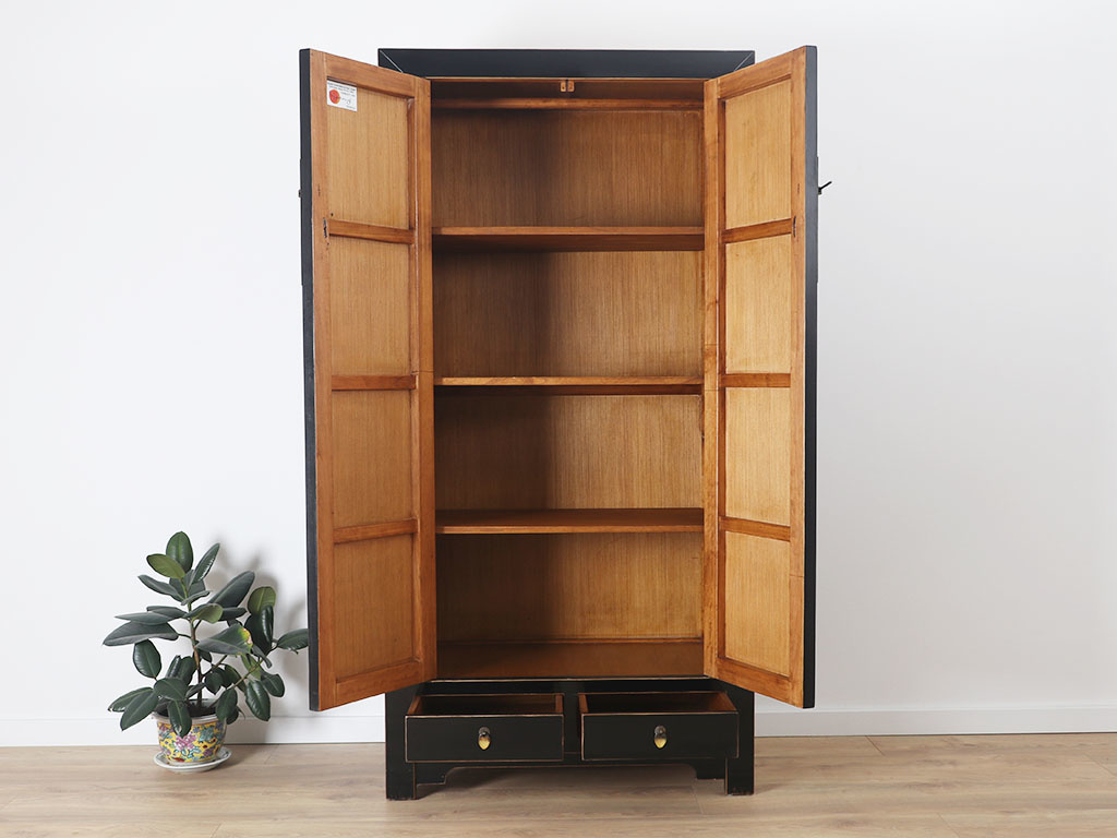 Wedding cabinet with natural wood edges with double doors and 2 drawers. Inside (removable): 3 shelves and a clothes rail. Style: Oriental / Asian. A beautiful eye catcher for your home.