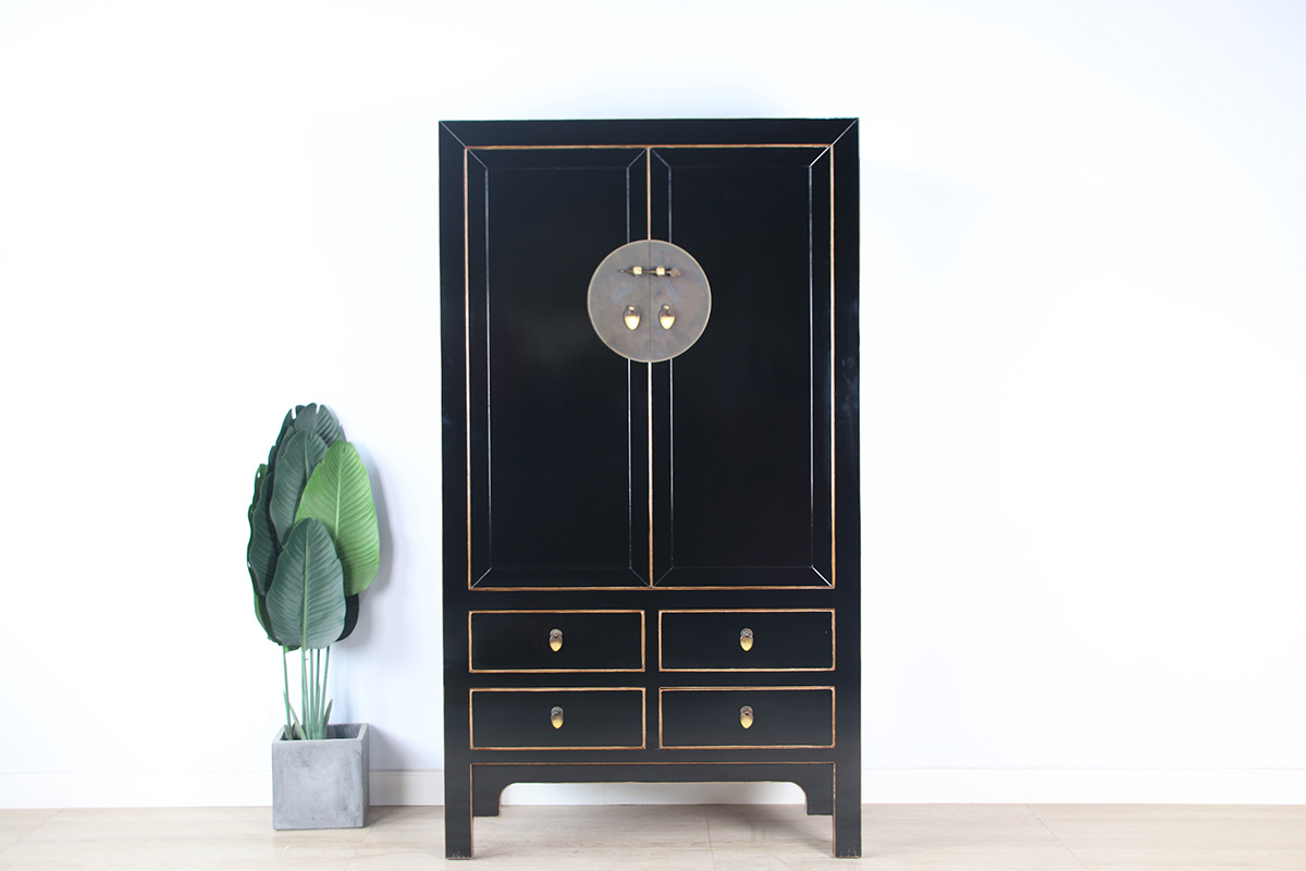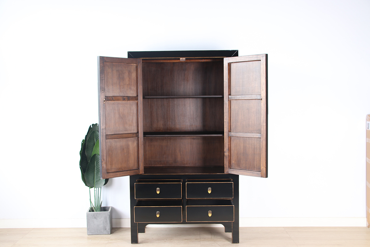 Wedding cabinet with natural wood edges with double doors and 4 drawers. Inside (removable): 2 shelves and a clothes rail. Style: Oriental / Asian. A beautiful eye catcher for your home.