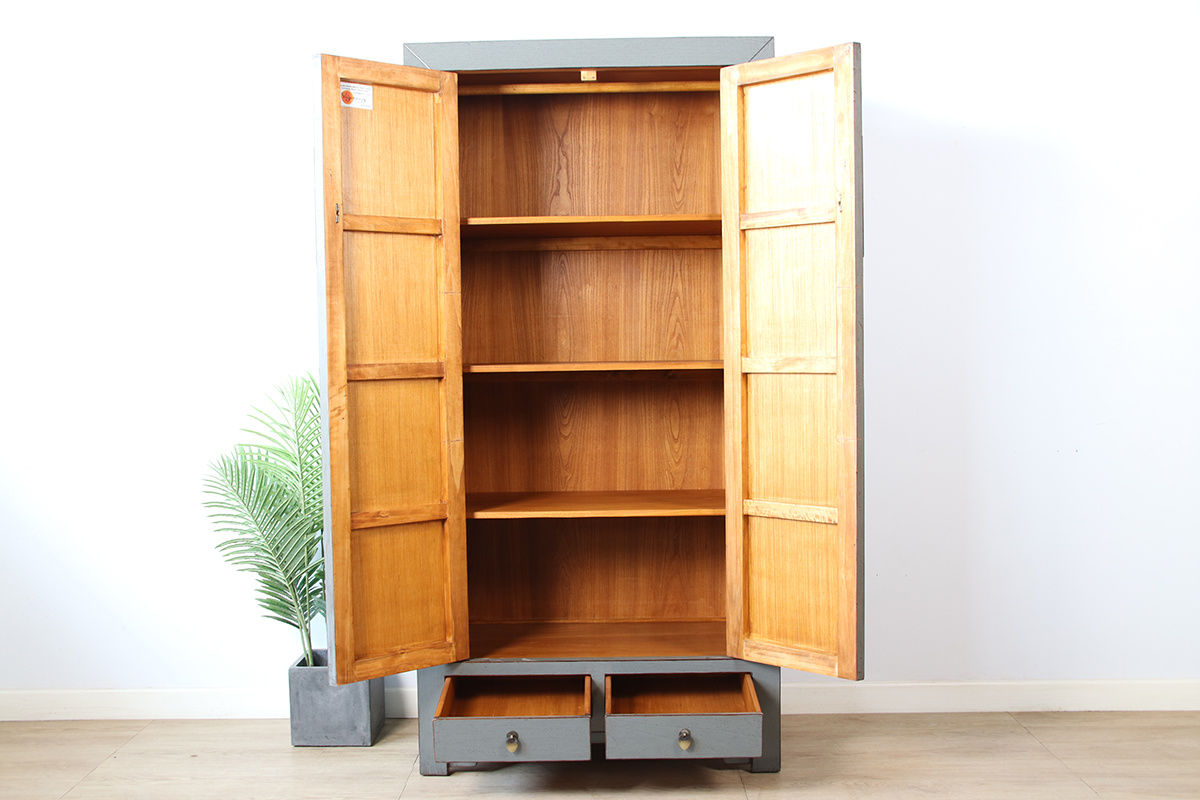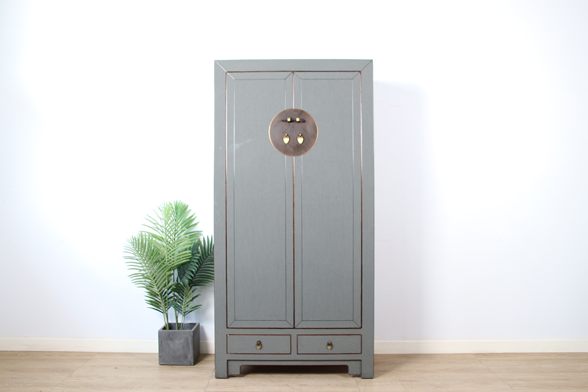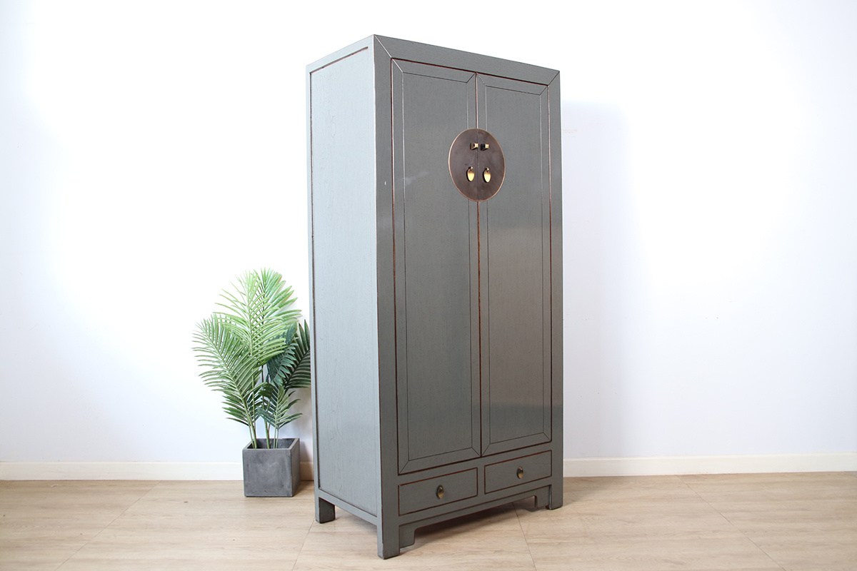 Chinese wedding cabinet 2 doors 2 drawers gray RAL7005