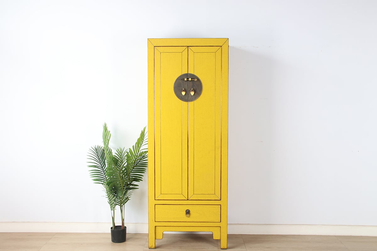Chinese wedding cabinet 2 doors 1 drawer yellow